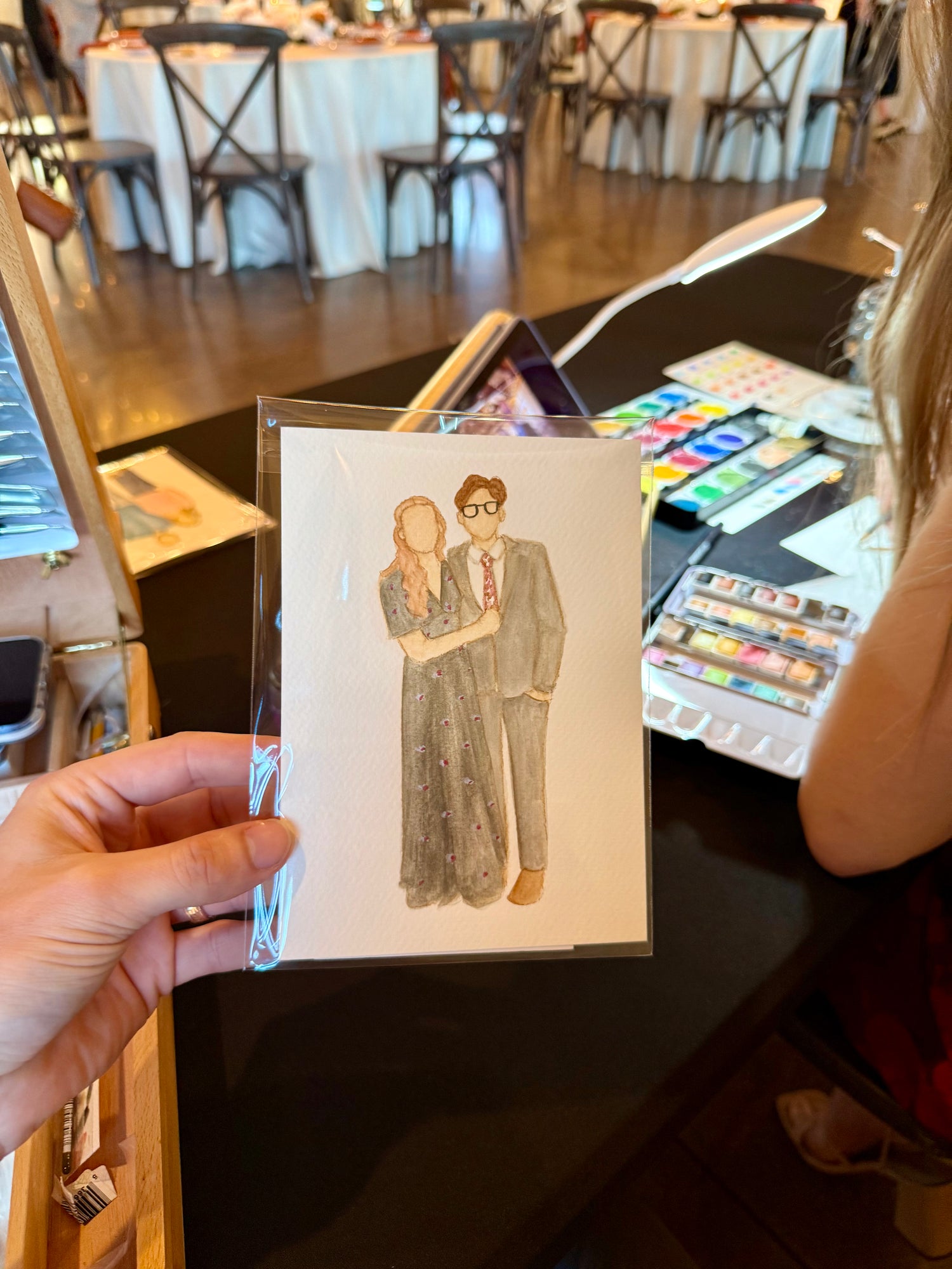 Helpful tip: I suggest placing a cocktail table nearby the live art station for guests to place their drinks on.